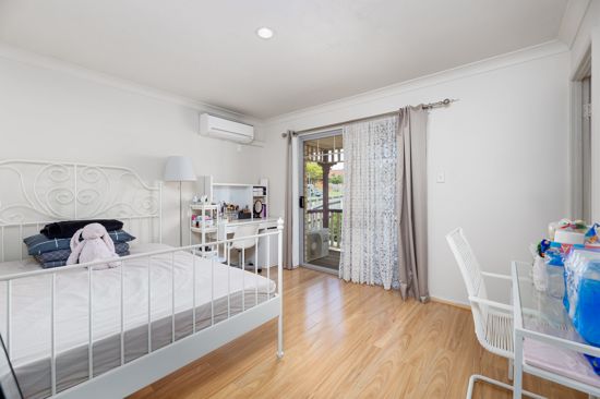 Upstairs including the staircase, high quality timber floor all throughout, it features 3 built-in bedrooms (include a master with ensuite, air-conditioning & walk-in robe), balcony off the master bedroom, 2.5 bathrooms in total, extra parking space at the front, as well as plenty of visitor's parking spaces.