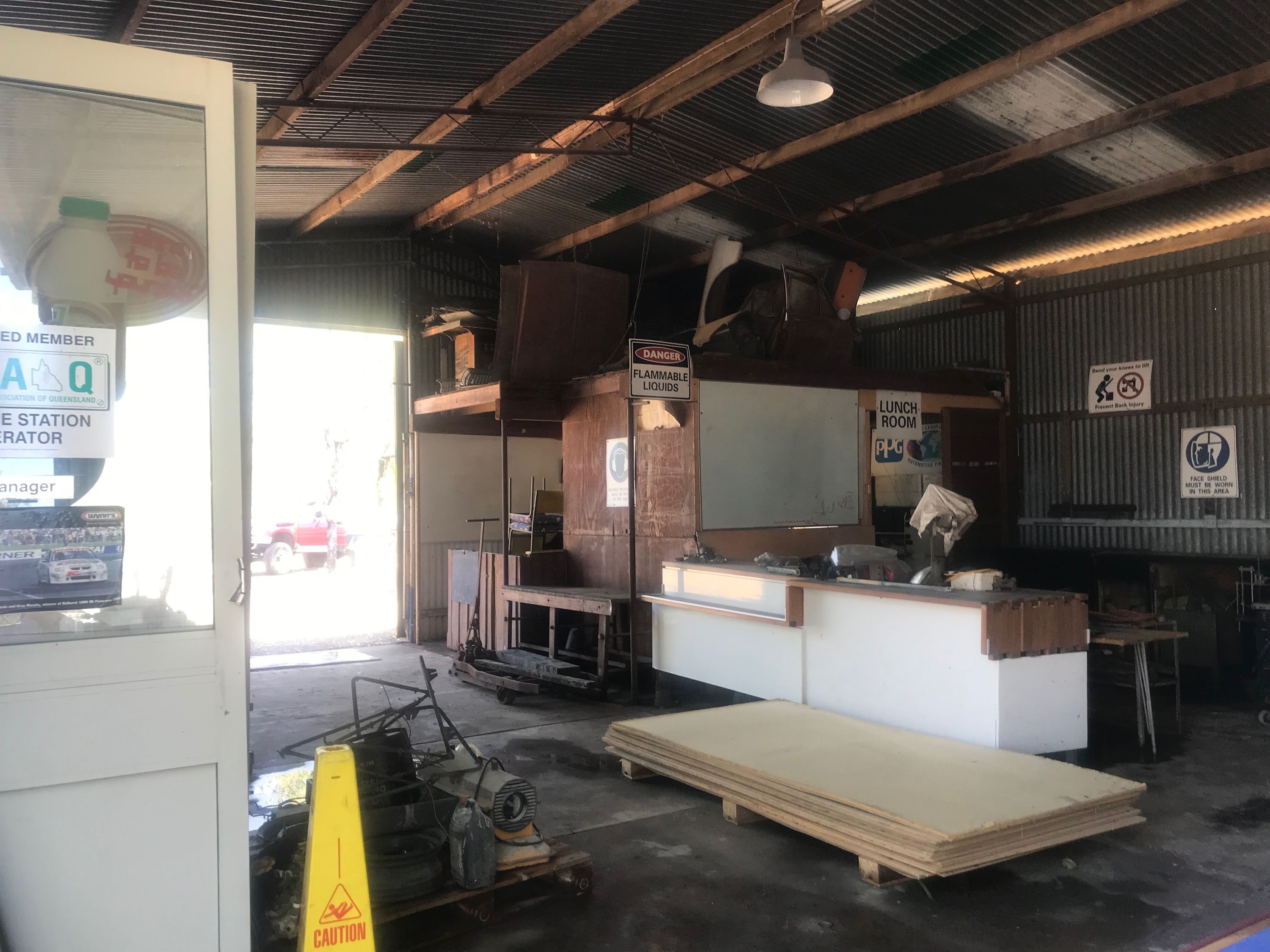 - 1 large Workshop housing an equipped Auto Repair Centre dual heavy vehicle access building full workshop office space facility adjacent Spray booth approx. 150m2
