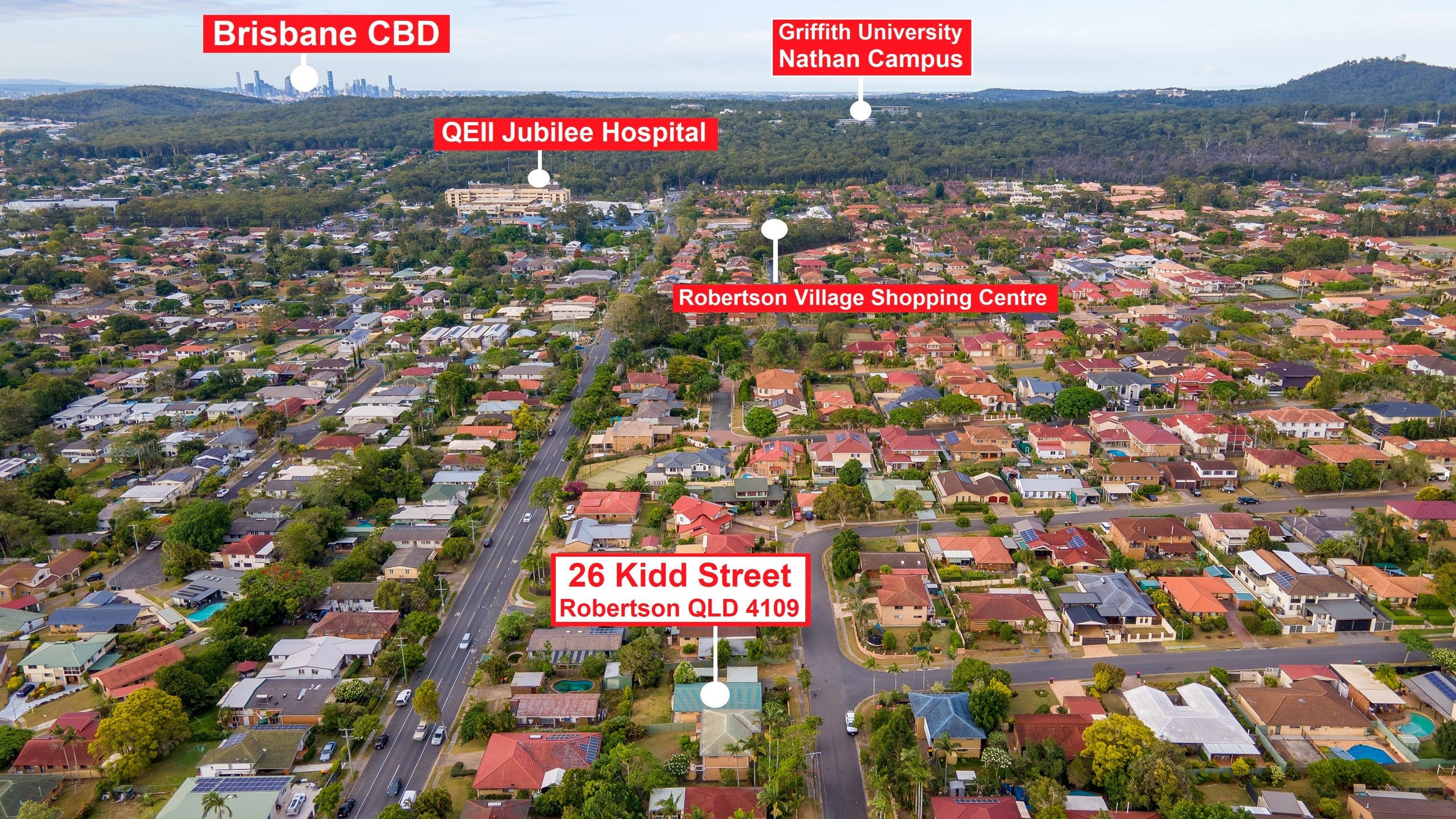 Positioned on a big 633sqm rectangular block with a wide approx. 20 meters in frontage, within a quiet, leafy street, this is your chance to acquire affordable living within the catchment and an easy walk approx. 800 meters to the top-ranking renowned Robertson State School. Welcome to 26 Kidd Street Robertson
