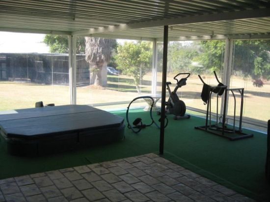 * 10m x 9m shed with cathedral ceilings (council approved conversion) with bar and air conditioning - perfect party room or teenage retreat etc.