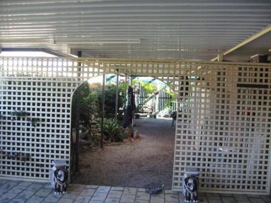 * Covered outdoor entertainment area, servery from kitchen, spa and cafe curtains.