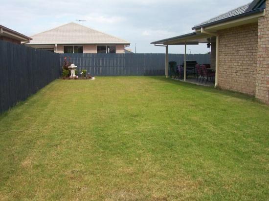 The fully fenced large backyard can be accessed through the side gates, with enough room for a caravan or boat.